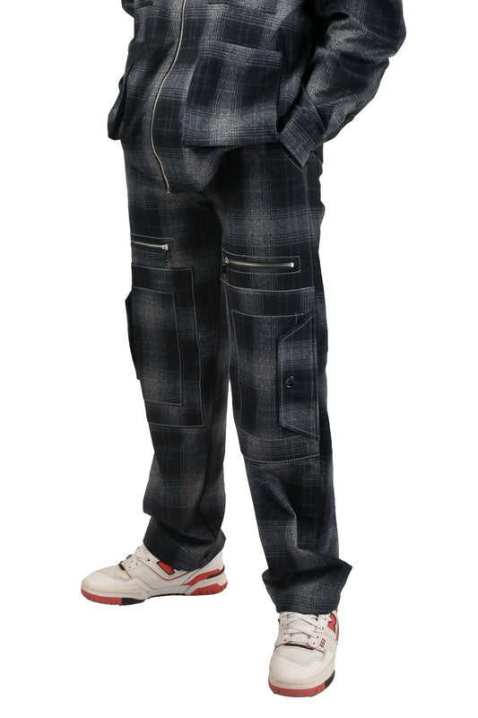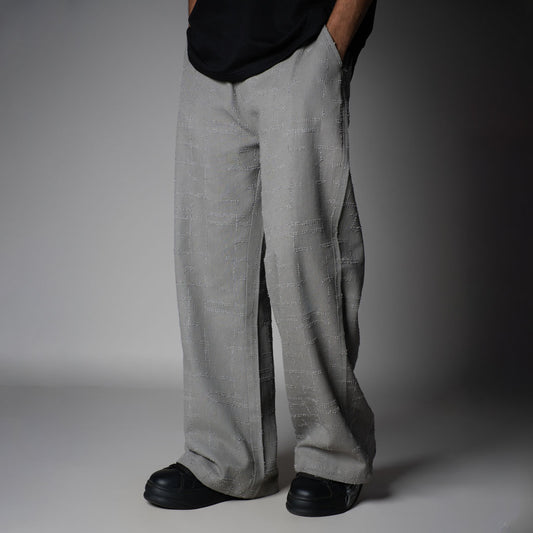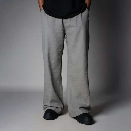 GREY CHECKERED ROOFING BOOT CUT DENIM