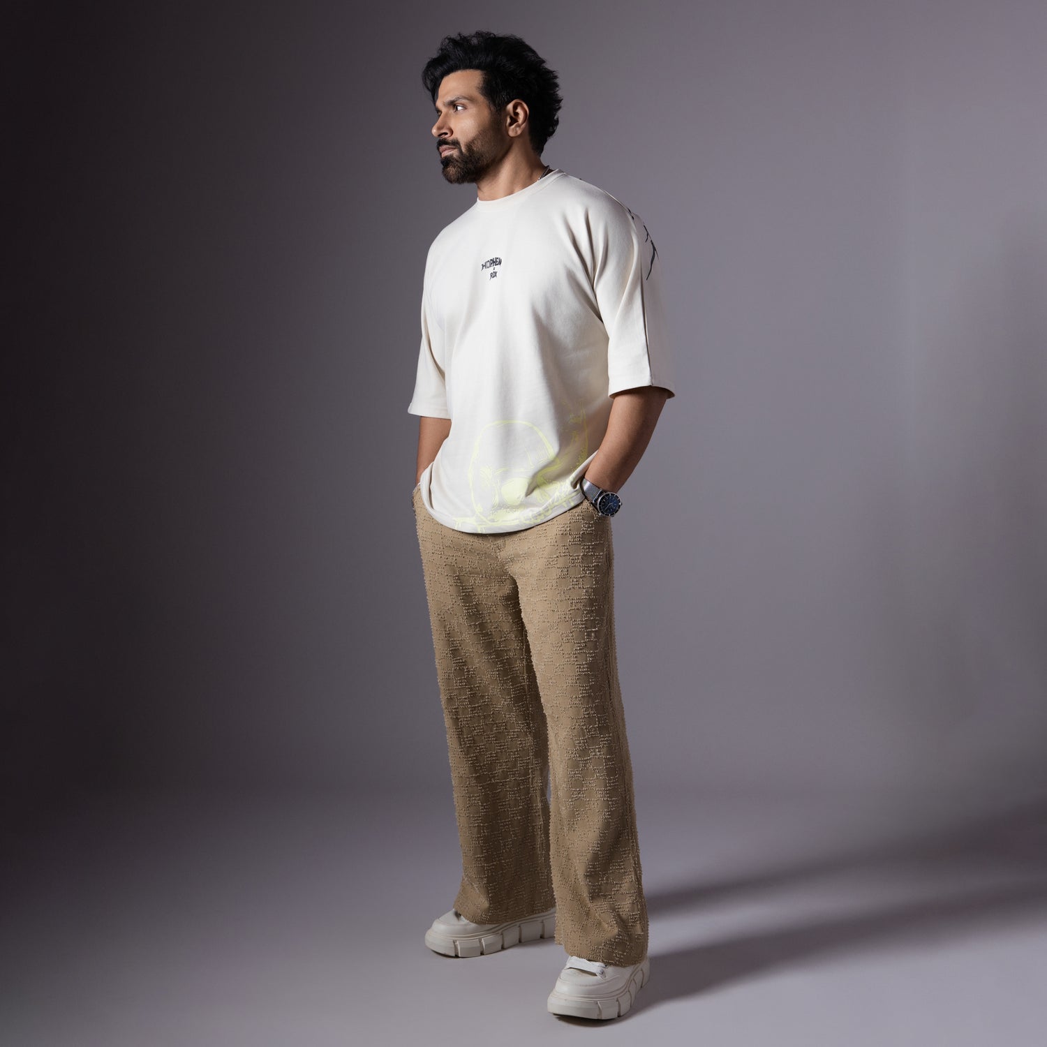 KHAKHI LONG FLAP TEXTURED TROUSER