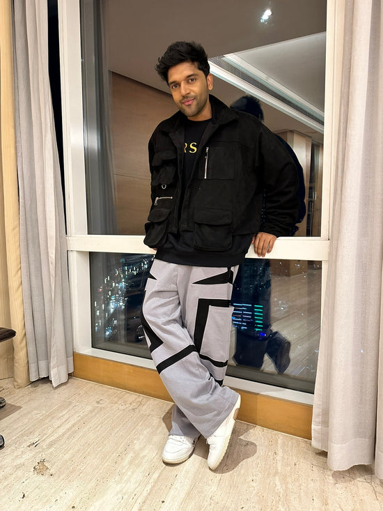 CHARCOAL & BLACK POINTED PANEL SWEATPANTS