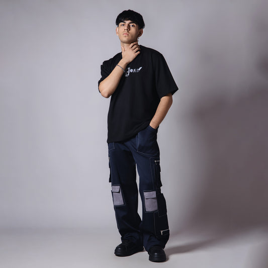 MIDNIGHT BLUE BOXY POCKET SUEDE CARGO