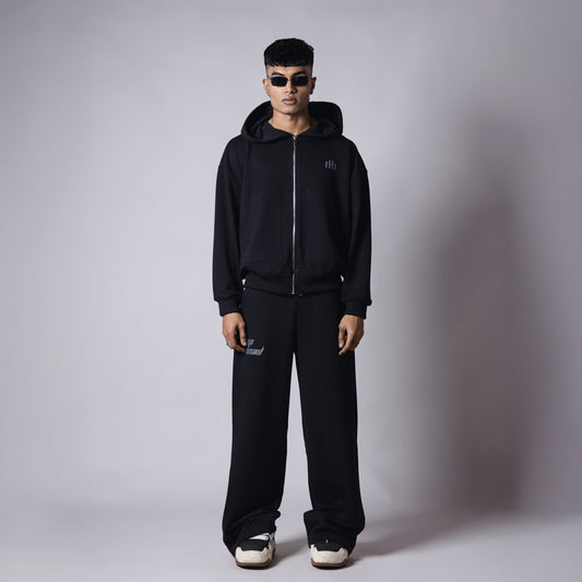 BLACK BASIC HEAVY ZIPPER HOODIE