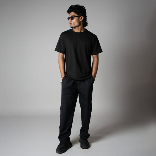 BLACK SIDE POCKET STRAIGHT FIT CARGO SWEATPANT