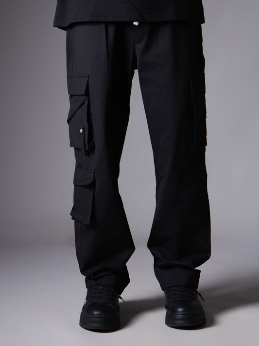 BLACK MULTI POCKET CARGO SWEAPANTS