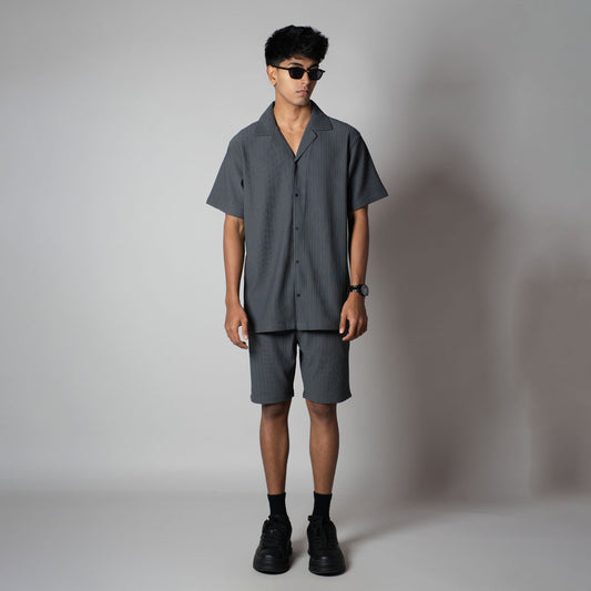 CHARCOAL STRIPPED TEXTURED CO-ORD SET