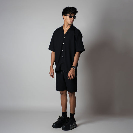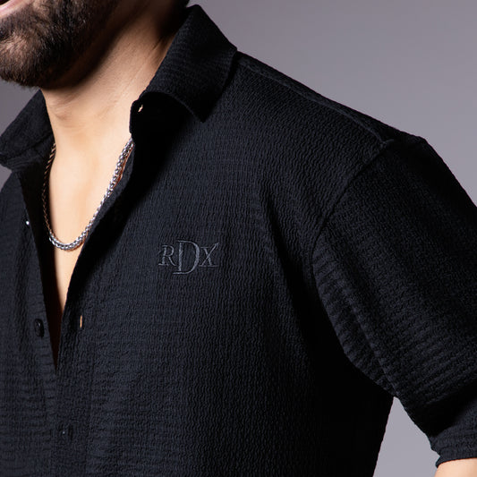 BLACK TEXTURED CLASSIC CO-ORD SET- RDX
