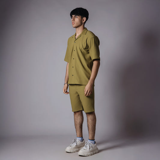 OLIVE GREEN STRIPPED TEXTURED CO-ORD SET