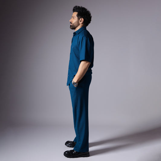 BLUE TEXTURED CLASSIC CO-ORD SET- RDX