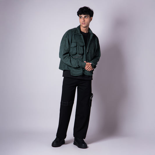 BLACK DOUBLE POCKET TEXTURED SHACKETS