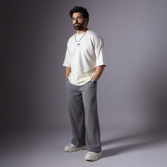 GREY CHECKERED ROOFING BOOT CUT DENIM