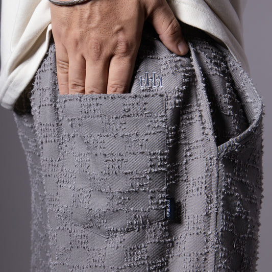 GREY CHECKERED ROOFING BOOT CUT DENIM