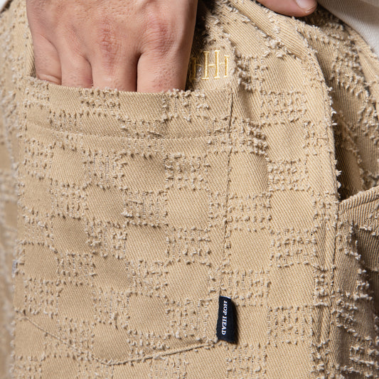 BEIGE CHECKERED ROOFING BOOT CUT DENIM