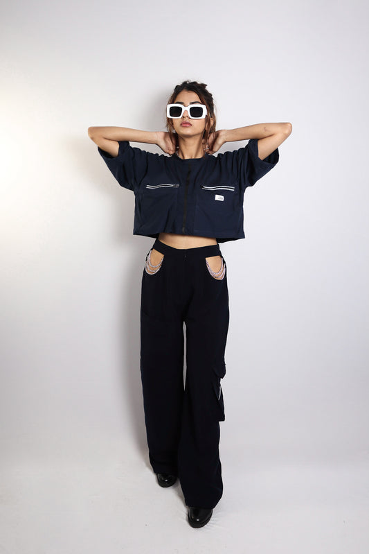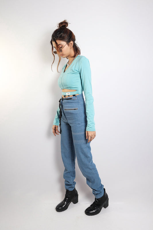LIGHT BLUE FULL SLEEVE CROP TOP