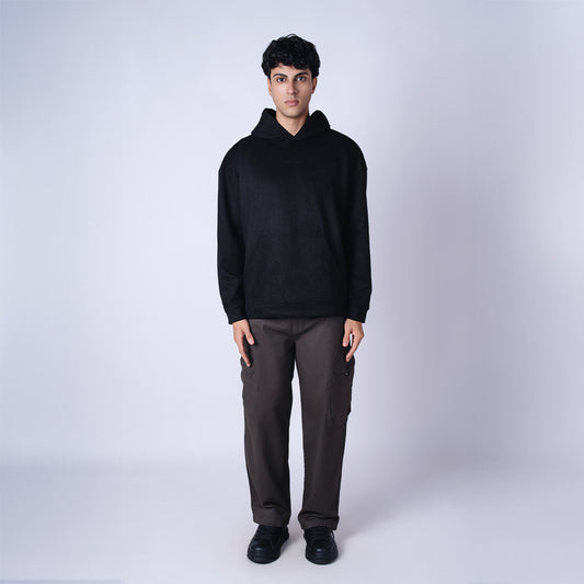 BLACK EMBROIDERED SUEDE T-SHIRT