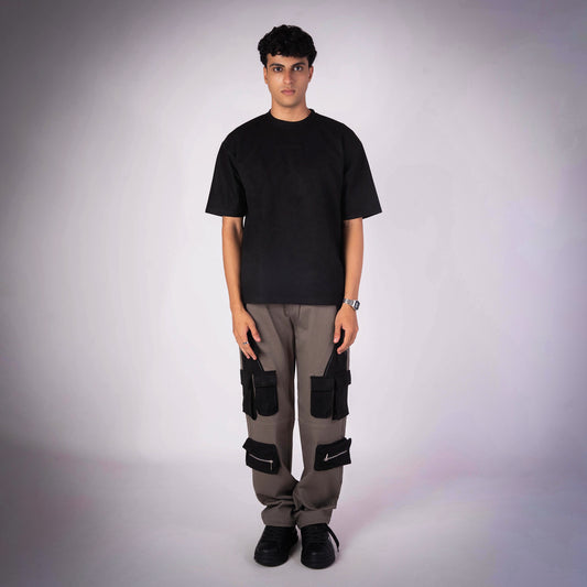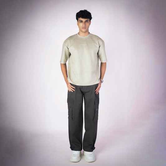 CHARCOAL EMBROIDERED SUEDE T-SHIRT