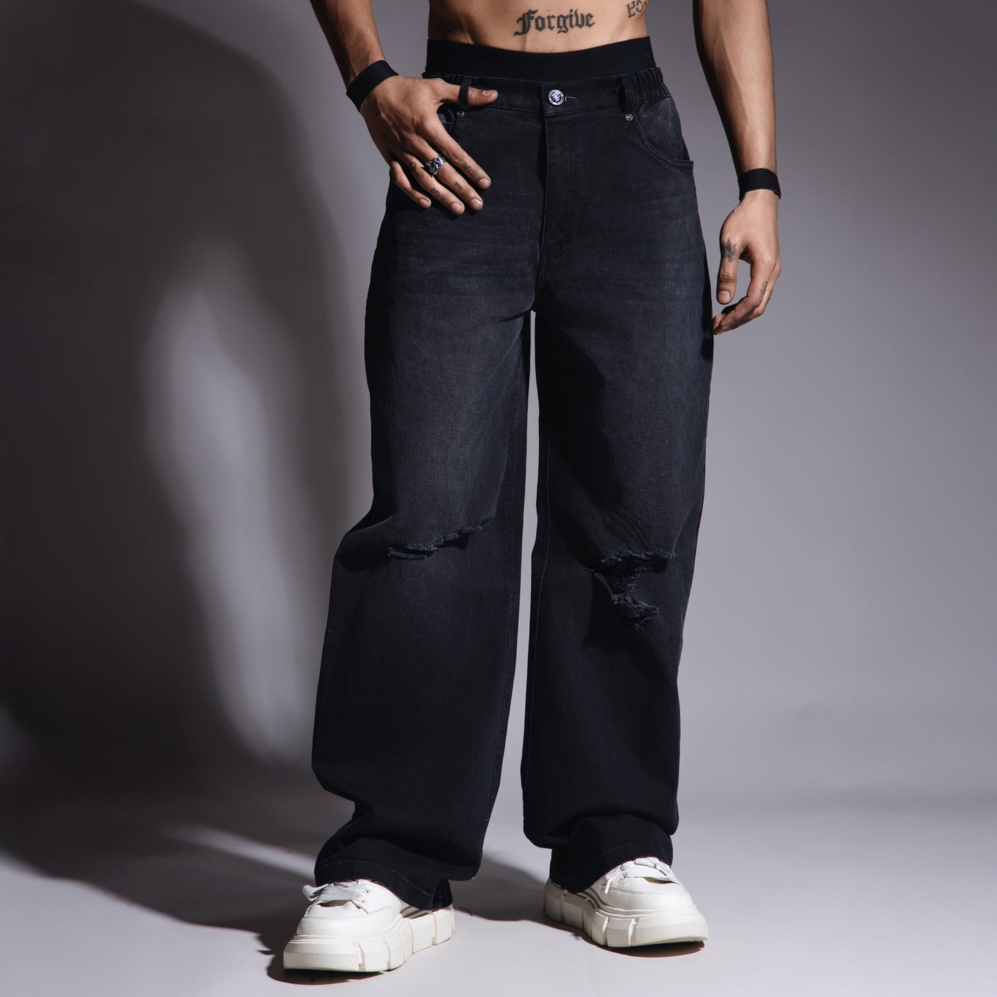 Step into a world of effortless style and sustainable fashion with the BLACK ECLIPSE RIPPED Denim. Crafted from eco-friendly, ultra-soft denim, these baggy jeans offer a relaxed fit that guarantees all-day comfort without sacrificing style. Distressed detailing on the knees and back adds a rugged, worn-in vibe, while the embroidered logo subtly elevates the design. Ideal for those who embrace relaxed fits and conscious fashion, the BLACK ECLIPSE RIPPED Denim lets you make a bold yet responsible statement.
