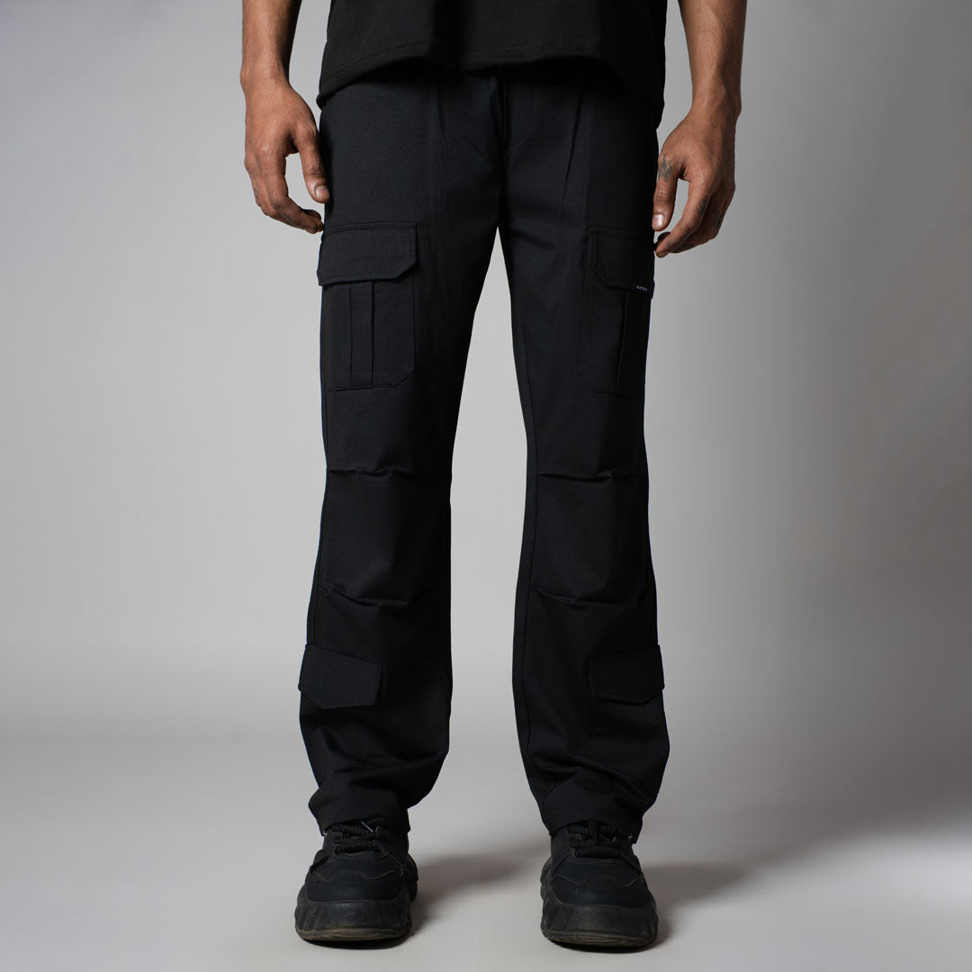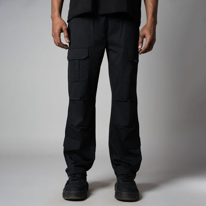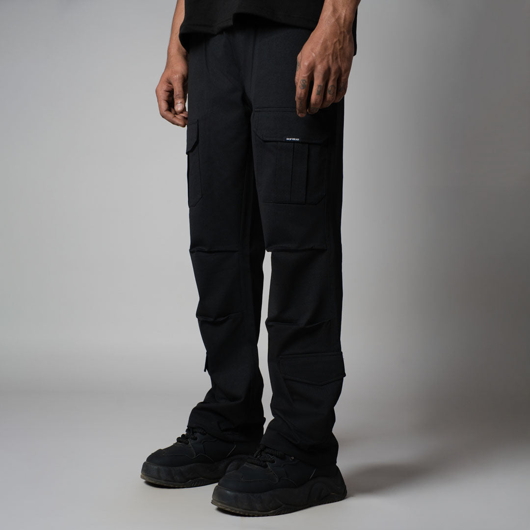 BLACK FOUR POCKET CARGO SWEATPANTS