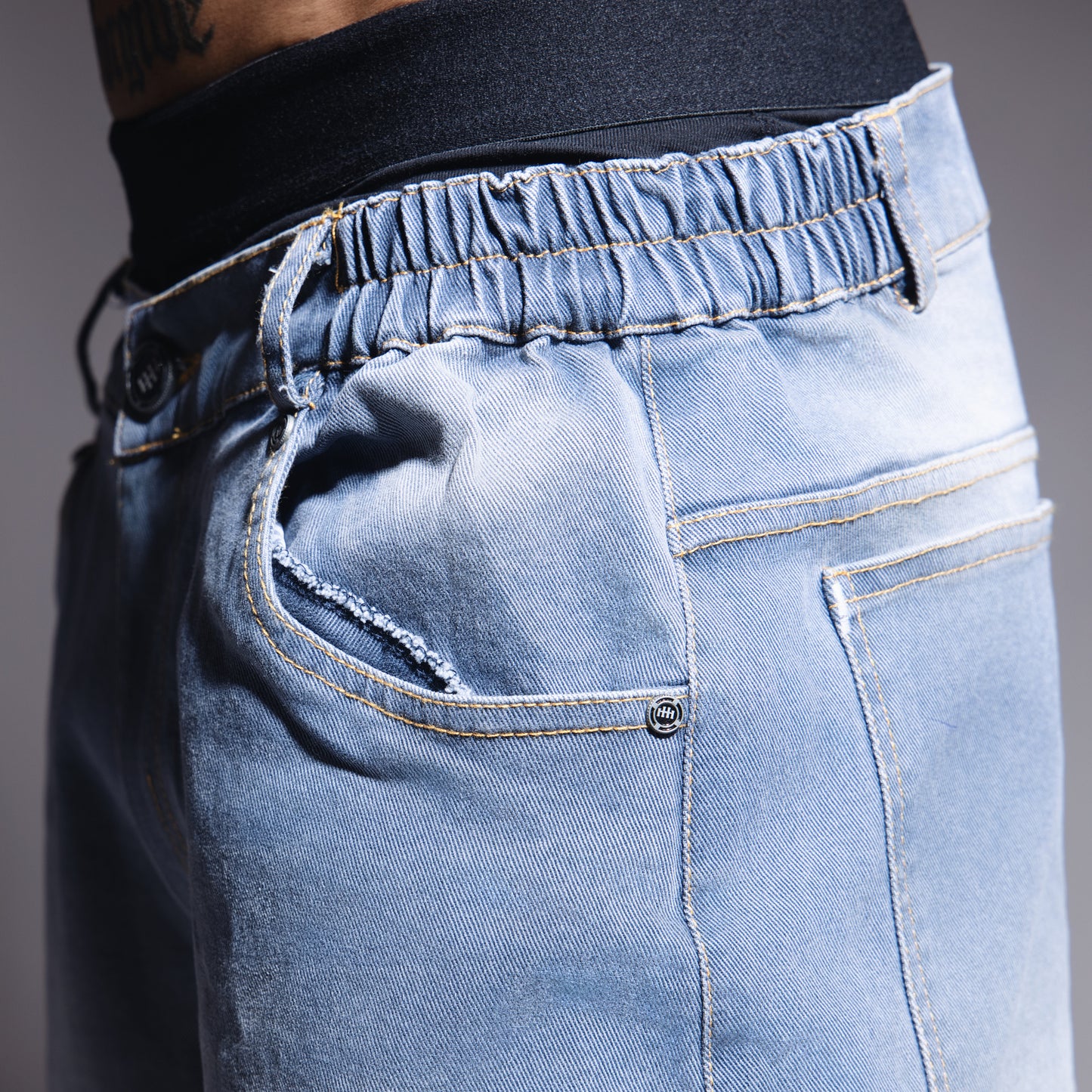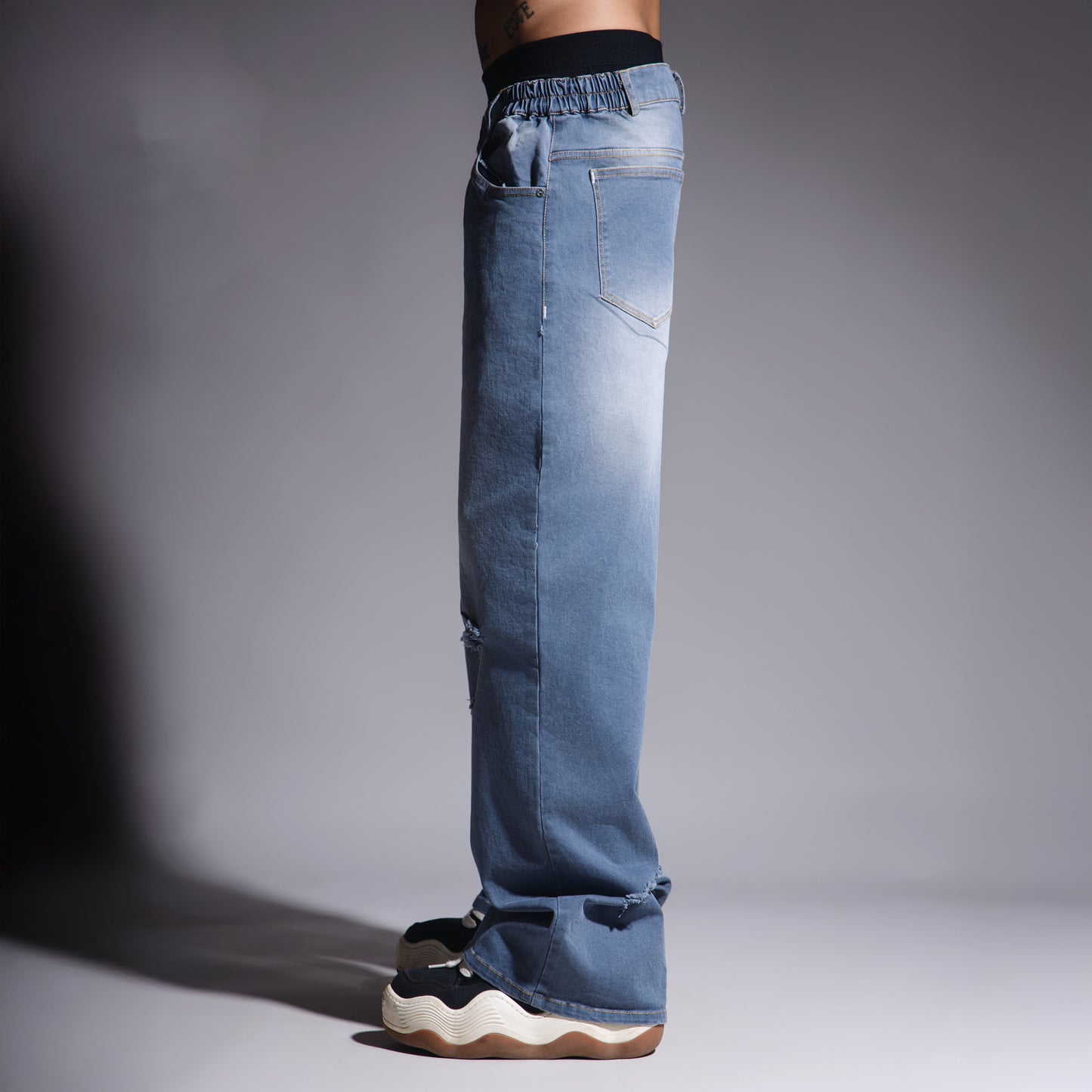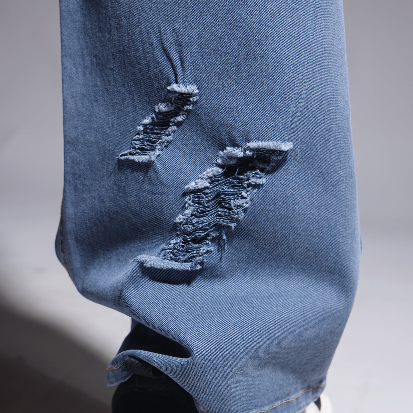 Step into a world of effortless style and sustainable fashion with the Blue Ripped Horizon Denim. Crafted from eco-friendly, ultra-soft denim, these baggy jeans offer a relaxed fit that guarantees all-day comfort without sacrificing style. Distressed detailing on the knees and back adds a rugged, worn-in vibe, while the embroidered logo subtly elevates the design. Ideal for those who embrace relaxed fits and conscious fashion, the Blue Ripped Horizon Denim lets you make a bold yet responsible statement.